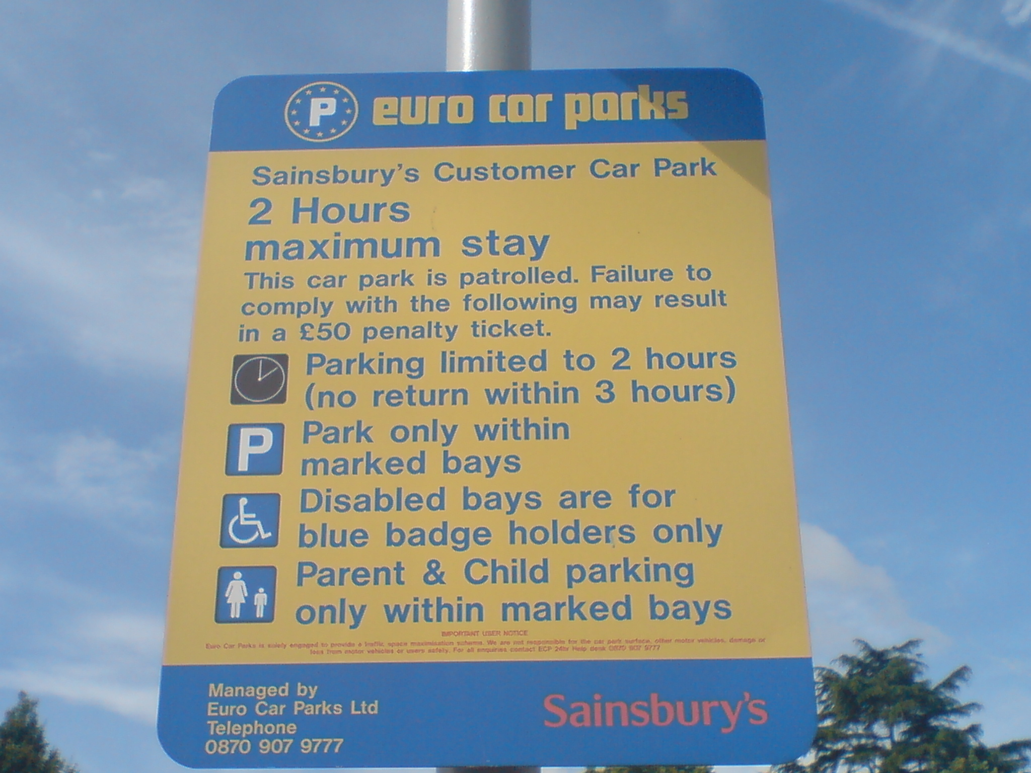 英国の大手スーパーマーケットの駐車場の罰金についてですが、先日、職場付近のSainsbury’sに買い物にいった時、午前中で駐車場もすいていたので、Disableの駐車スペースに車を止めてしまいました。タバコを買うだけだったので大丈夫だろうと、車に戻ると罰金の切符がフロントガラスにつけてありました。近くにいた罰金の切符をきったSainsbury’sの監視員に尋ねたところ、£30の罰金を払わないといけないと言われ、猛反発しました。なんで公道でないのに罰金を払わないといけないのかと!するとその監視員は俺に£20払えば取り消しにしてやると言ってきたので、早く会社に戻りたかったこともあり、値段交渉をはじめ、結局、財布の中身を見せ、£7と数ペンスしか入ってなっかたので、それでその場は逃れることができました。罰金の切符の内容を正確に読んでなかったので、本当に支払う義務があるかどうかは未だに不明ですが、日本でもセブイレブンなどのコンビニの駐車場で、罰金の内容を含んだ看板があることを思い出しました。監視員が示した駐車場利用の掲示板を後で見たところ、罰金£50と明記されてありました。何故、監視員は罰金£30と言ったのか未だに不明ですが・・・。既にご存知の方もいっらっしゃるかもしてませんが、日本と違い、英国の大手スーパーマーケットではちゃんと制服を着た監視員がおりますので、各スーパーマーケットの注意事項に従い駐車の際も注意を払った方がよいですね。