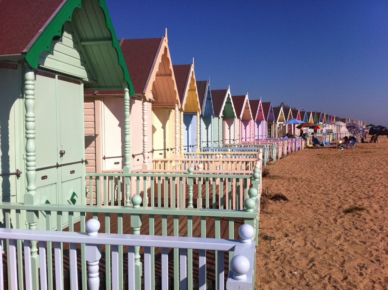 写真は英国の海辺によく見られる貸し小屋。