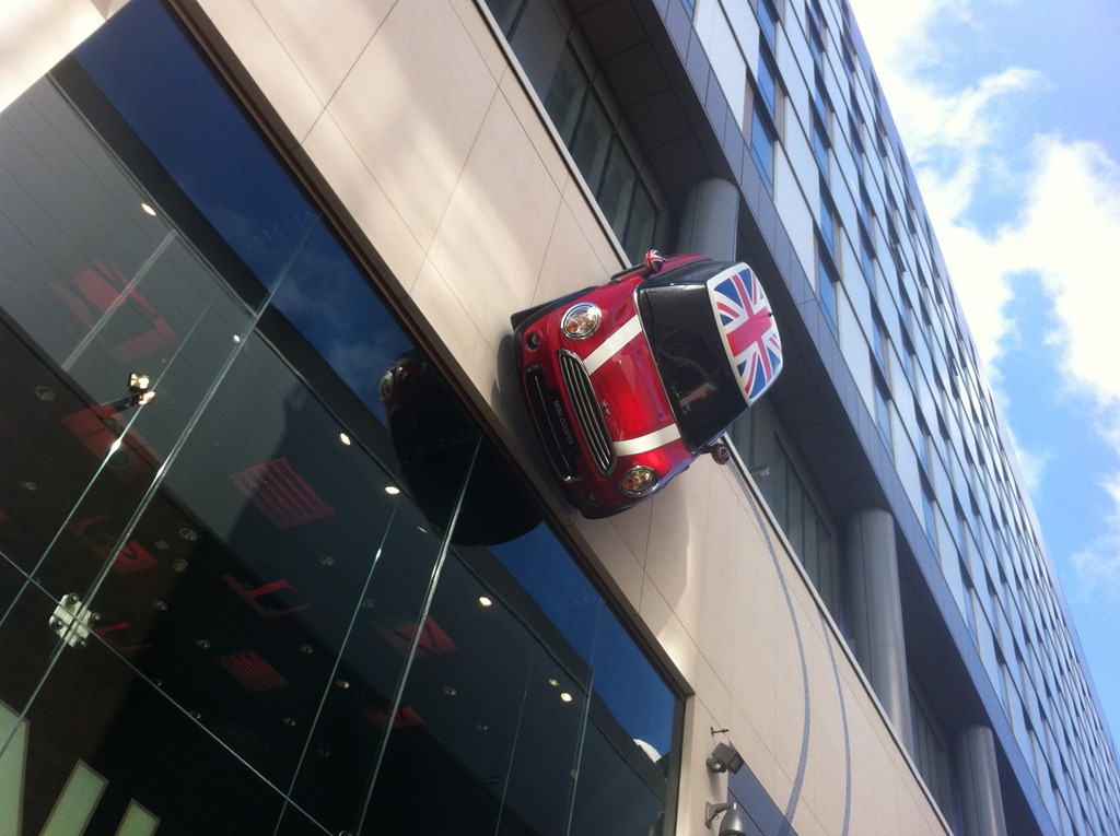 ビルの壁にminiが張り付いていました。。