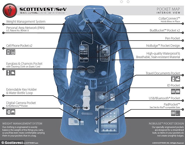 男性用ベストは何と42のポケット付で85ポンドだそうです。