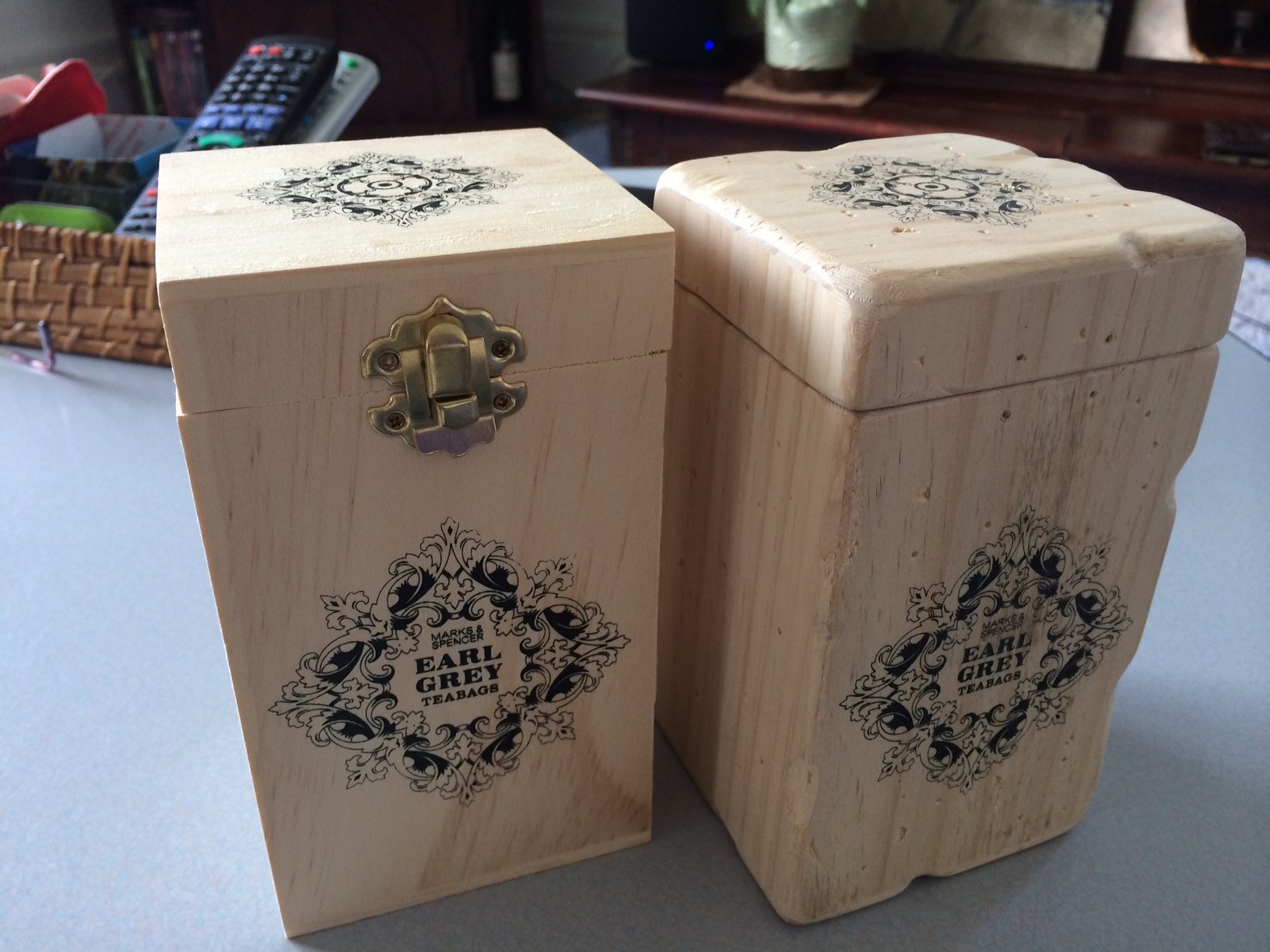 マークス&スペンサーで購入した、紅茶の木箱をアンティーク調にしてみました。